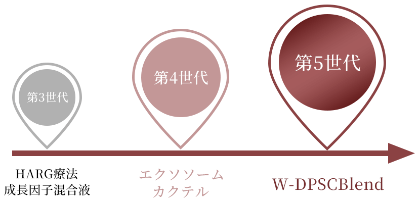 そこで当院では、再生医療の技術をさらに一歩進め、「高濃度・高純度エクソソーム(W-DPSC Blend)」を独自に調整・配合。毛根幹細胞をダイレクトに活性化させることで、これまでアプローチが難しかった領域にも作用します。