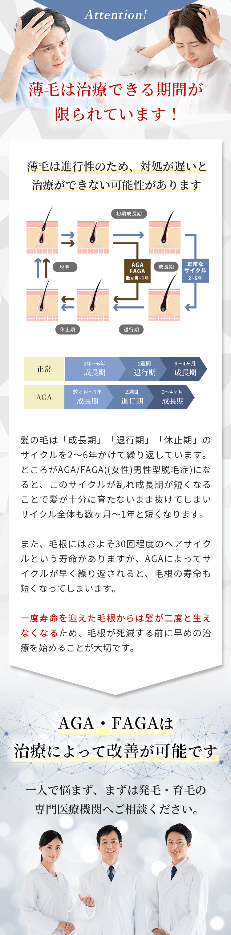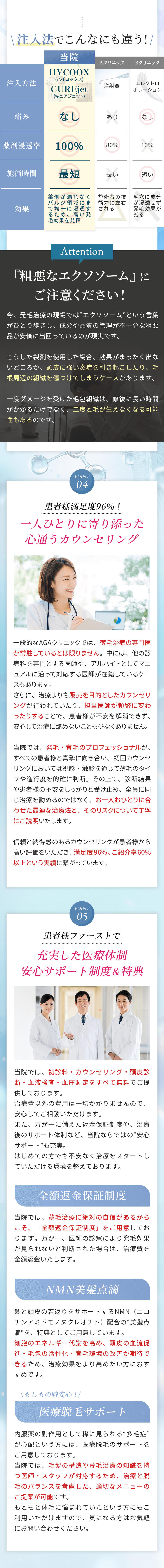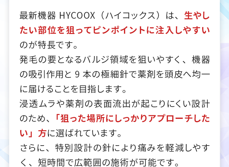 治療効果の実感には通常3〜6ヶ月ほどかかることが多くなっています。ヘアサイクルや生活習慣の影響により個人差がございます。