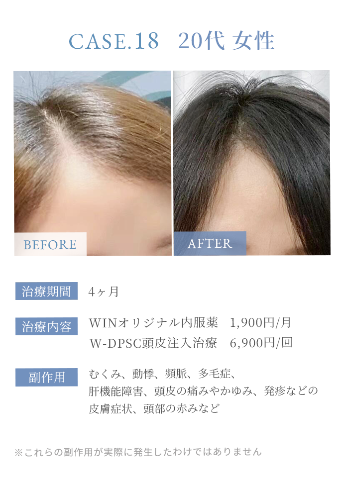 はい、女性の方の薄毛治療も可能です。女性の薄毛はホルモンの影響によることが多いため、ホルモンバランスに配慮した専用の治療を行っております。まずは無料カウンセリングにてご相談ください。
