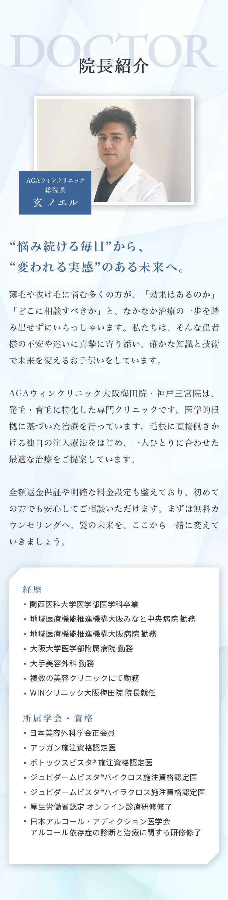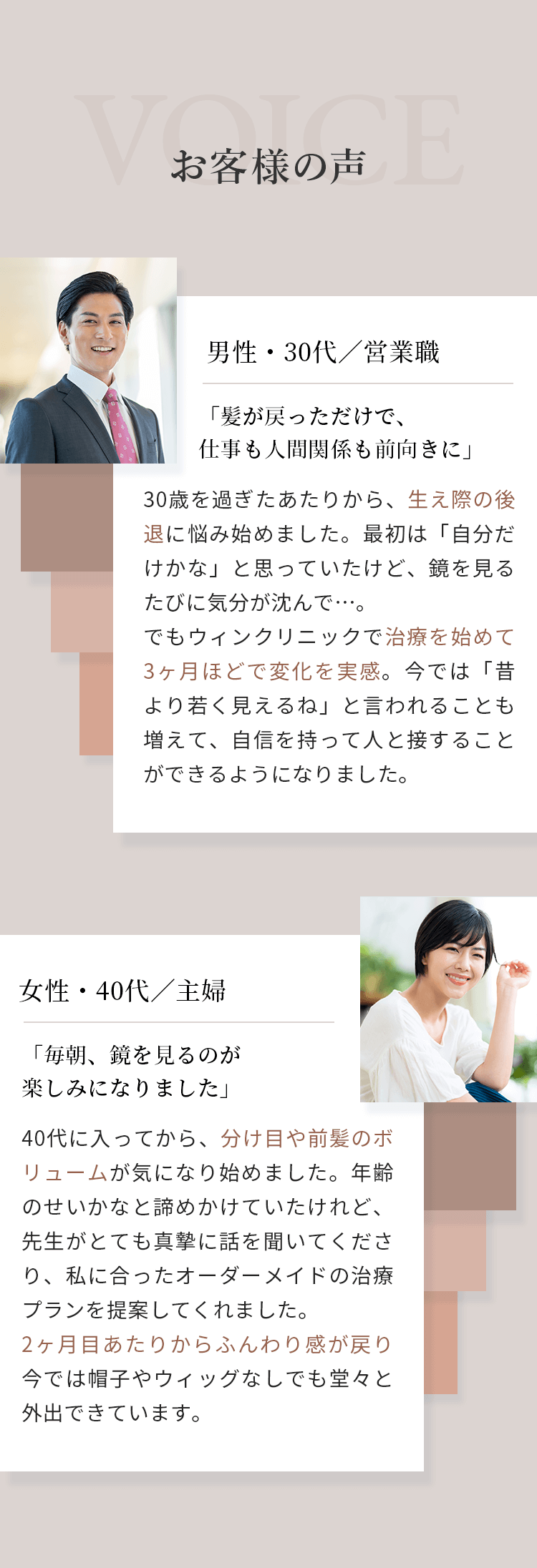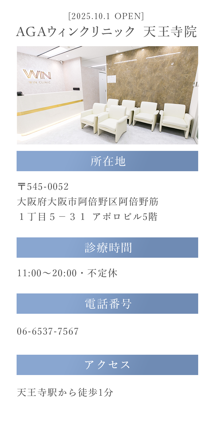 はい。ウィンクリニックの無料カウンセリングは、ご相談のみも可能です。AGA・薄毛に関するお悩みやご不安がございましたら、まずは無料カウンセリングでご相談ください。